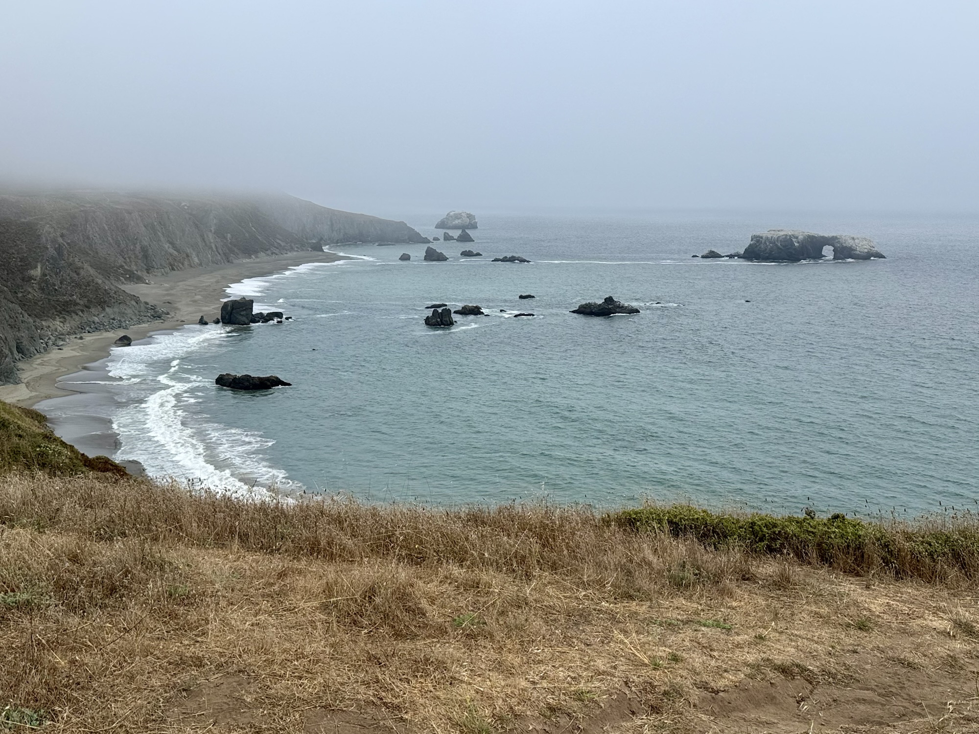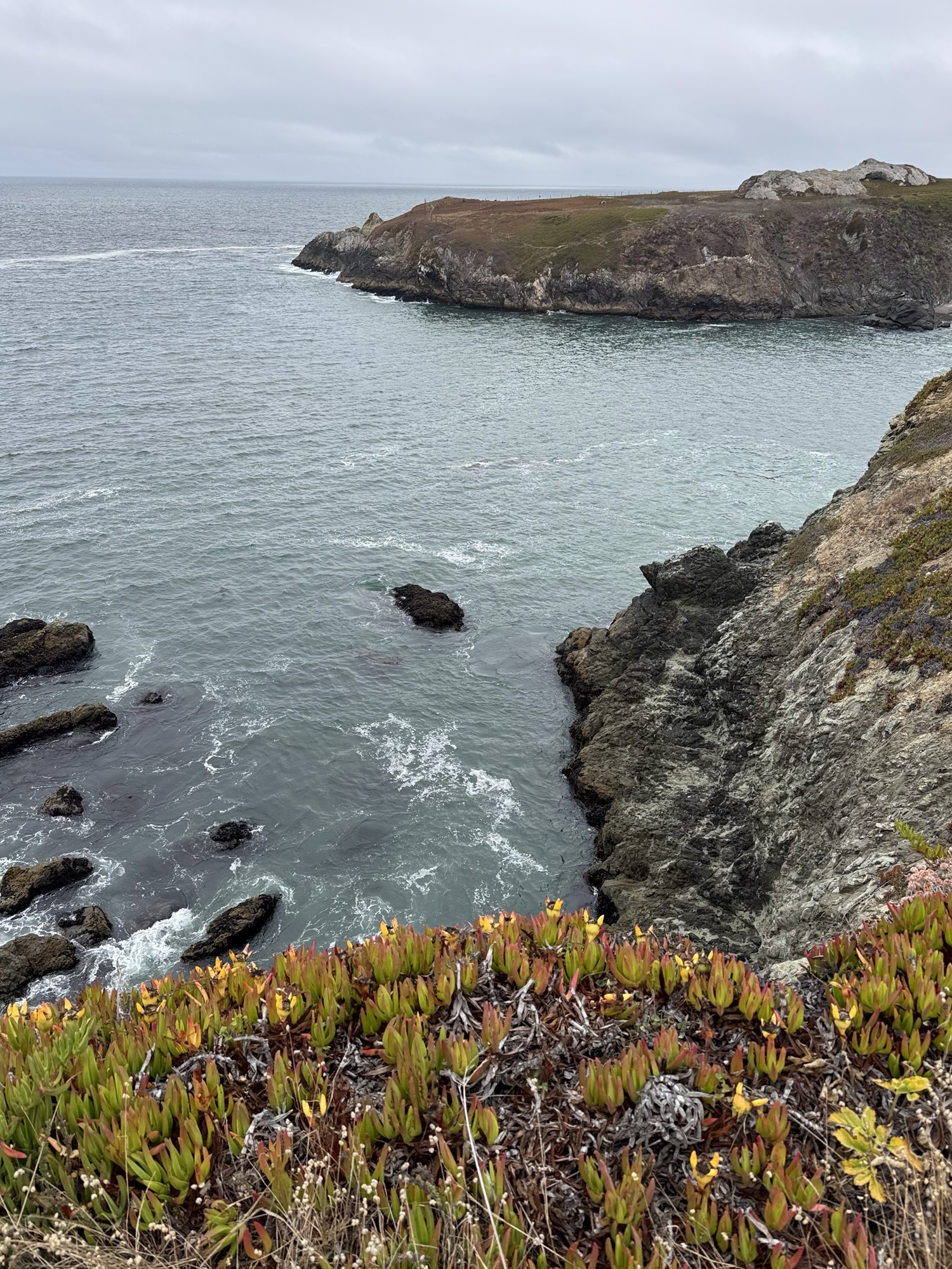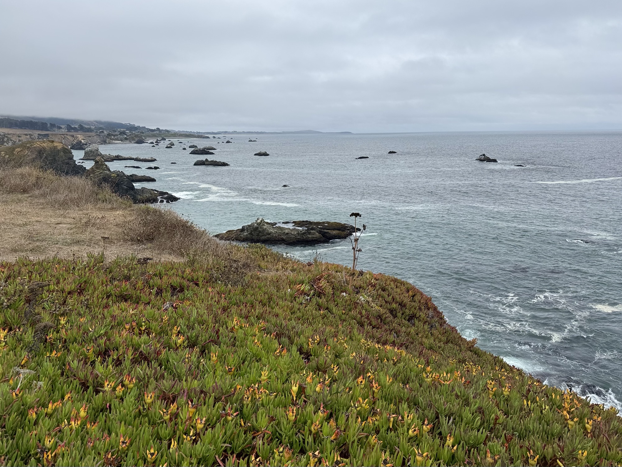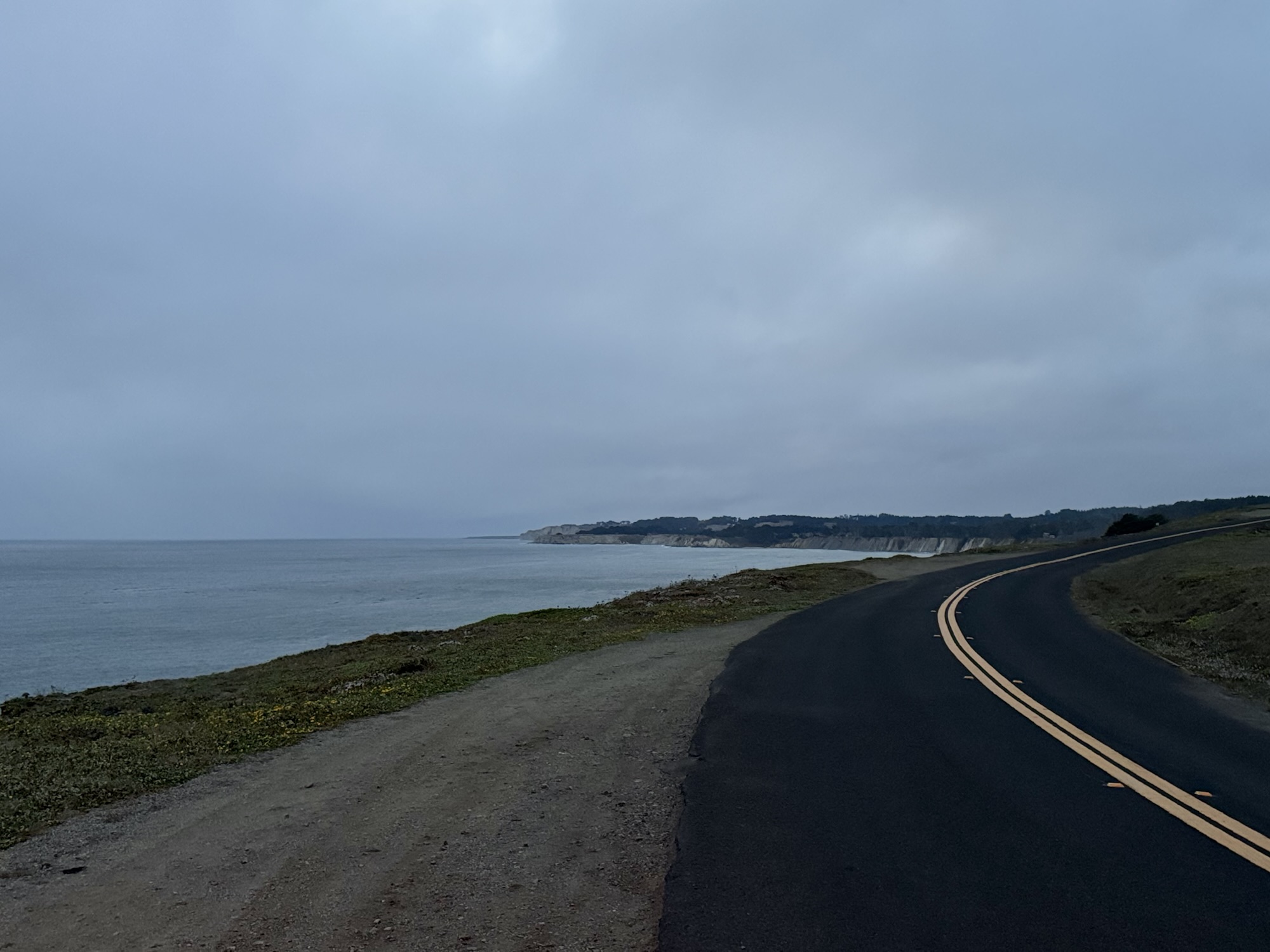 We left Goat Rock at 6PM and drove about another 90 minutes before finding the most perfect sleep spot ever, tucked in a private area away from the highway and with 360 degree views of the ocean. The soundtrack we had for sleep was *chef’s kiss* and by the time the sun set in the cloudy grey sky, it was 8:30PM. We were wiped out.