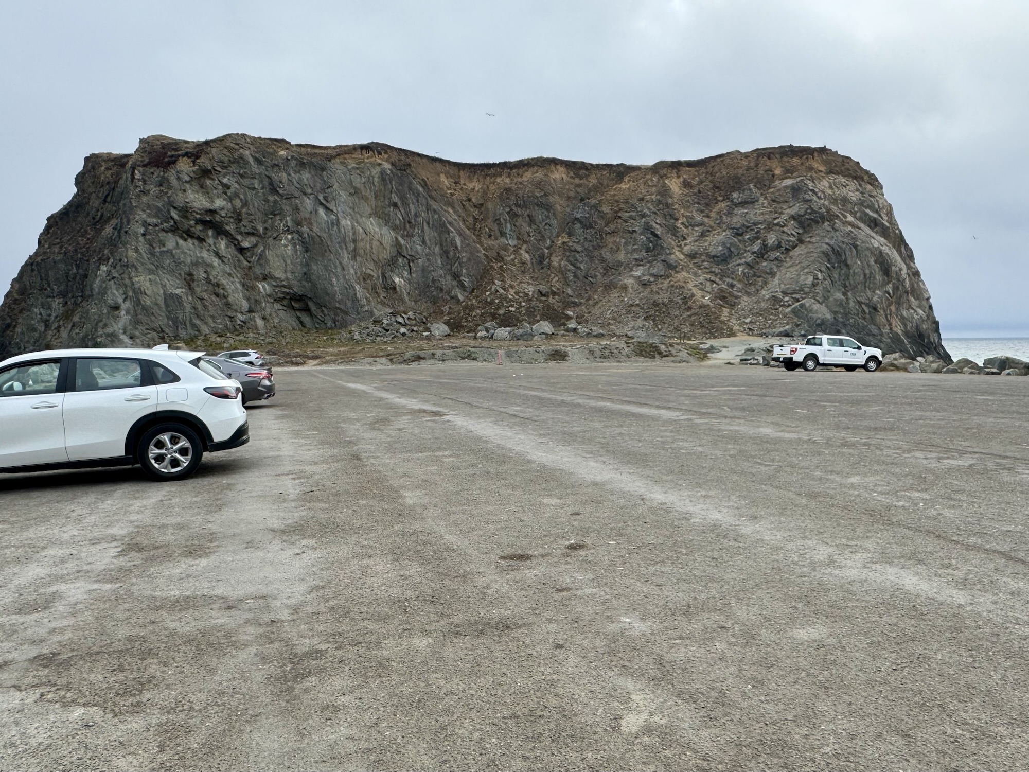 The tiny parking lot is right up against “Goat Rock” and you can see the “Arched Rock” in the distance.