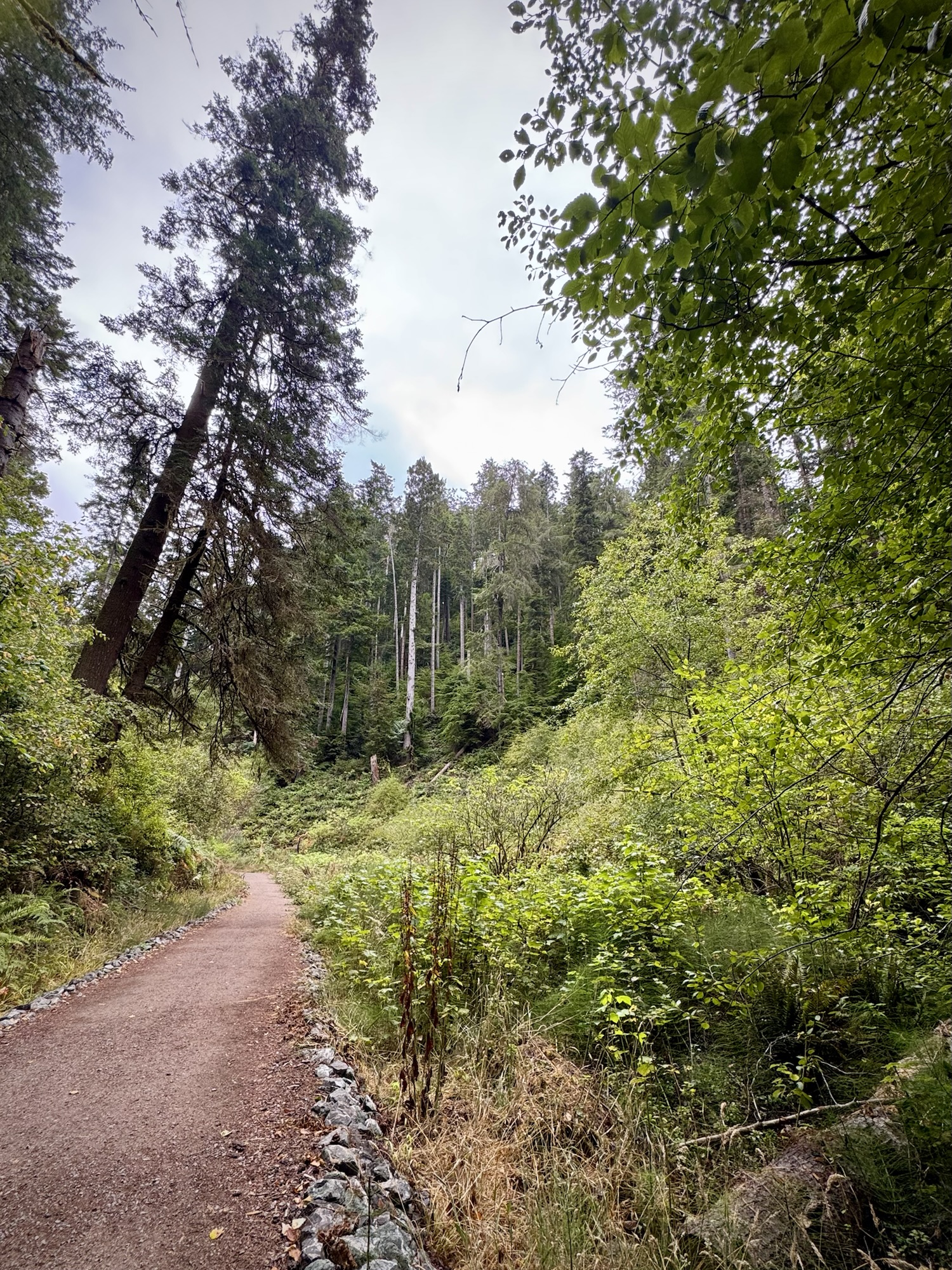 After spending the morning on the foggy coastline of Van Damme State Park, we headed a few miles up US-1 to Russian Gulch State Park.