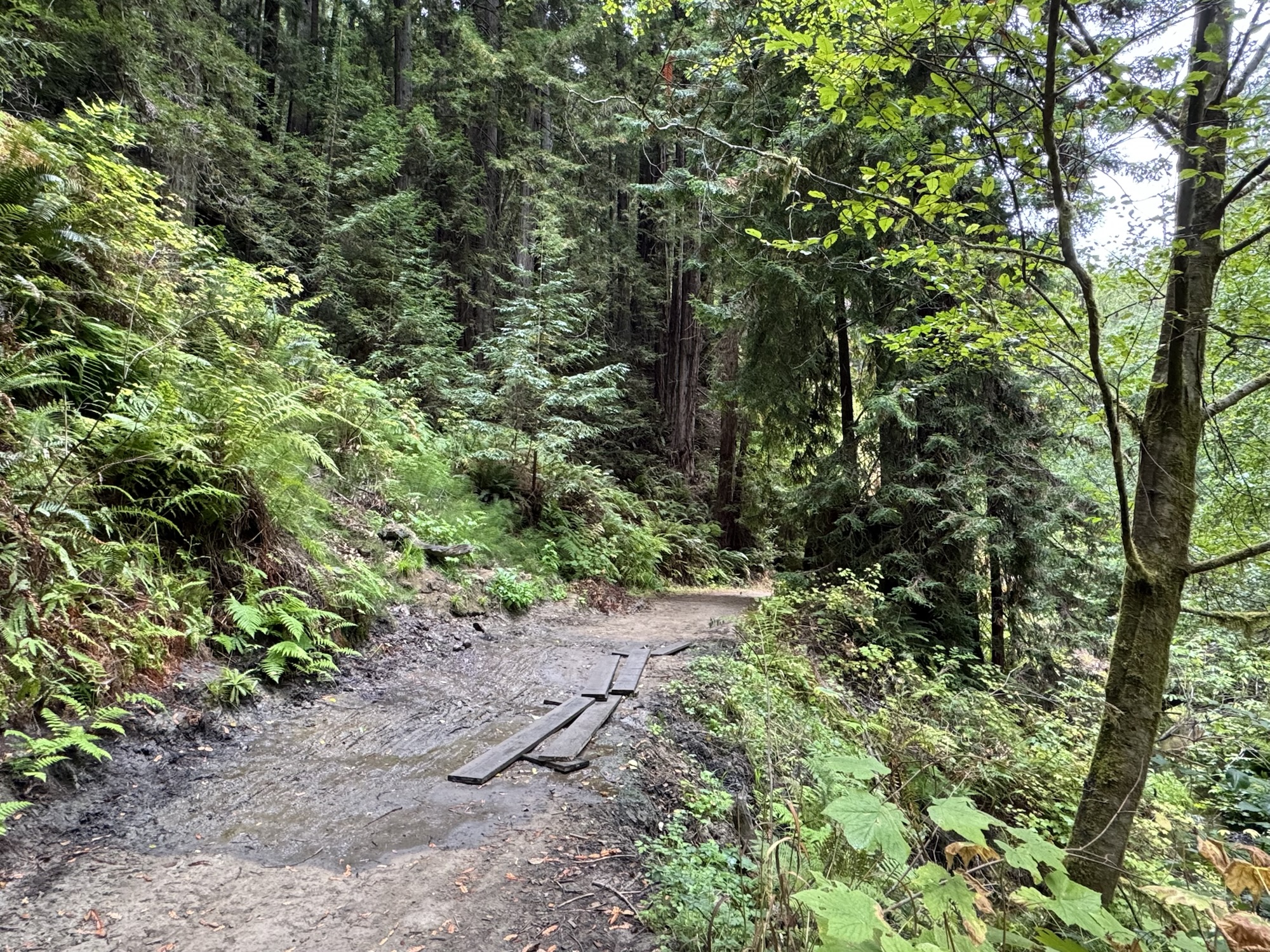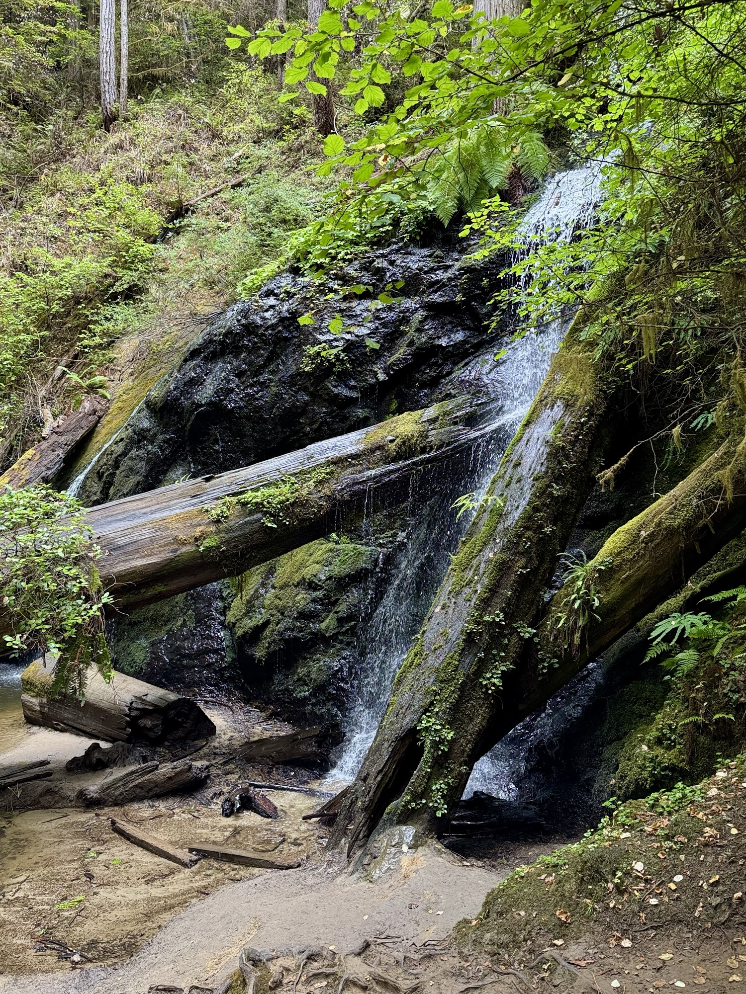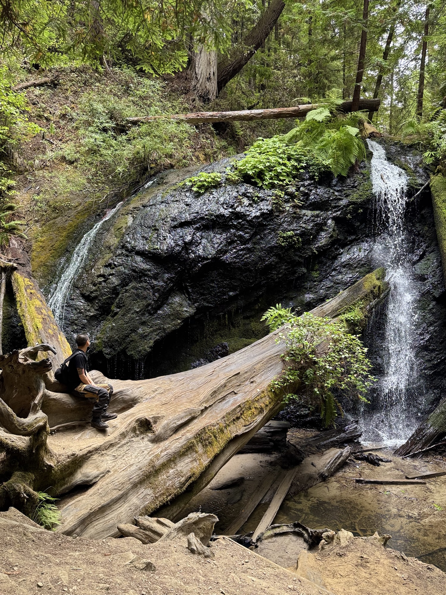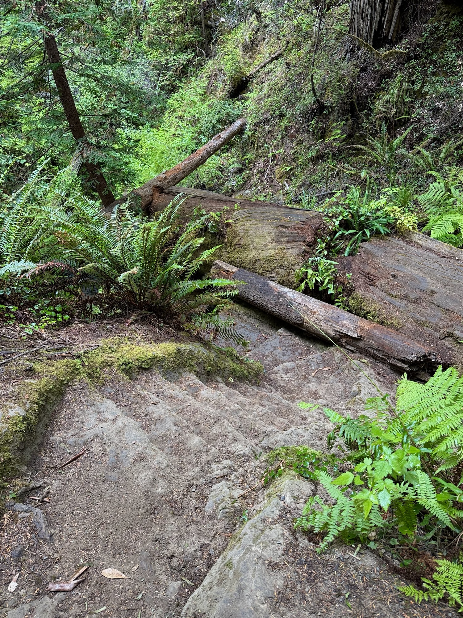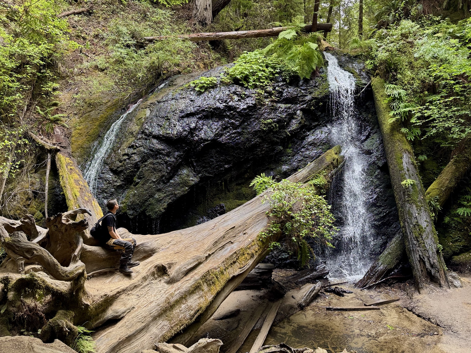 The Fern Canyon & Waterfall loop is a meandering, relatively flat, 6 mile-ish trail through lots of tall trees and – duh – surrounded by ferns. Would I come here specifically to do this hike? Probably not. Was it a pretty cool way to slowly transition into being surrounded by mega trees for the next few days? Definitely.