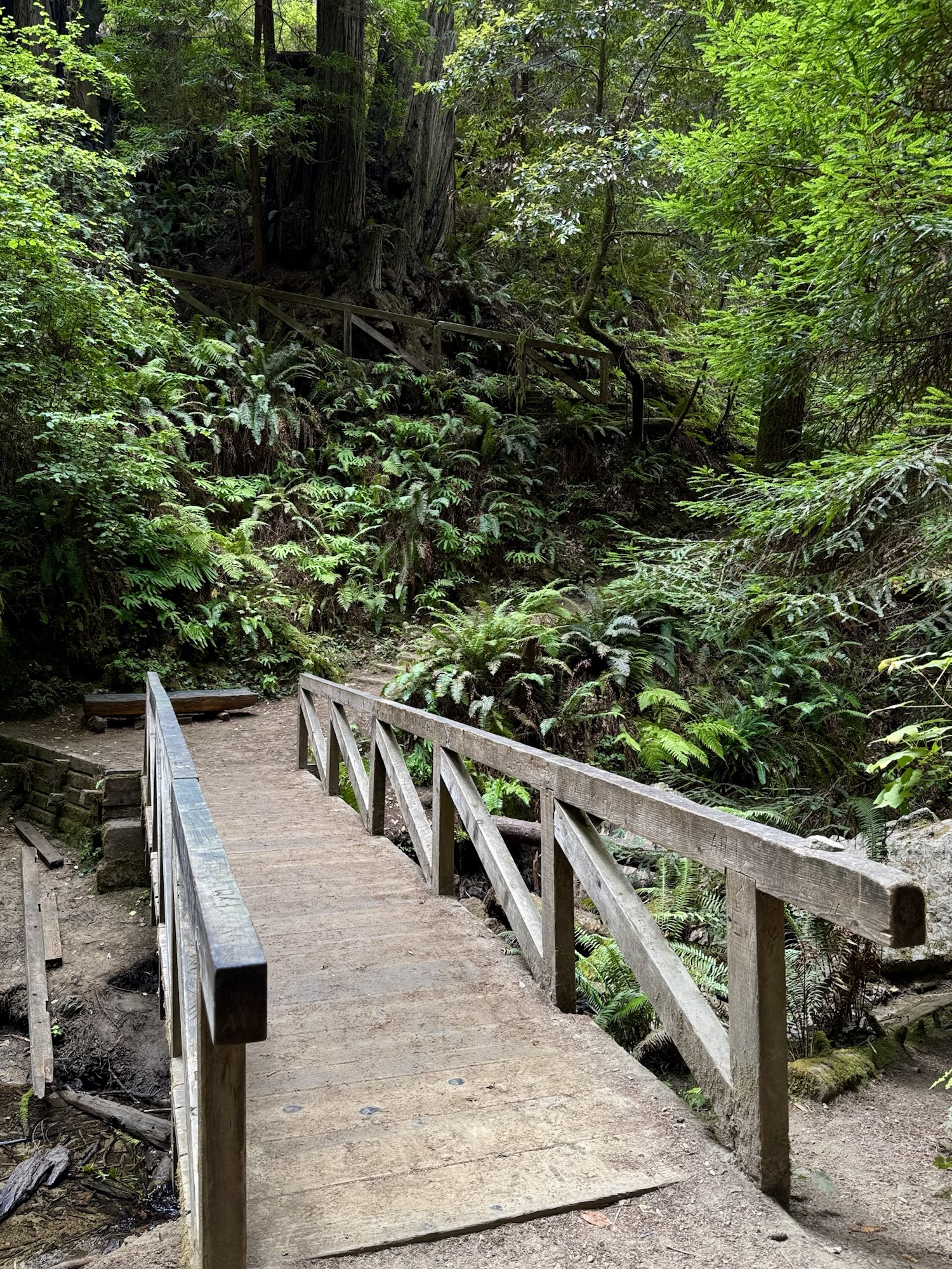 Green and ferns and bridges and ferns and trees and snack break.