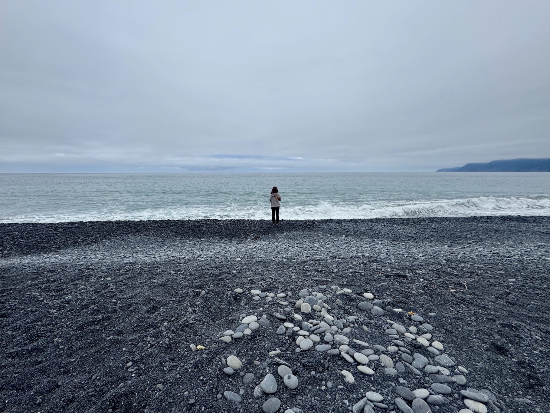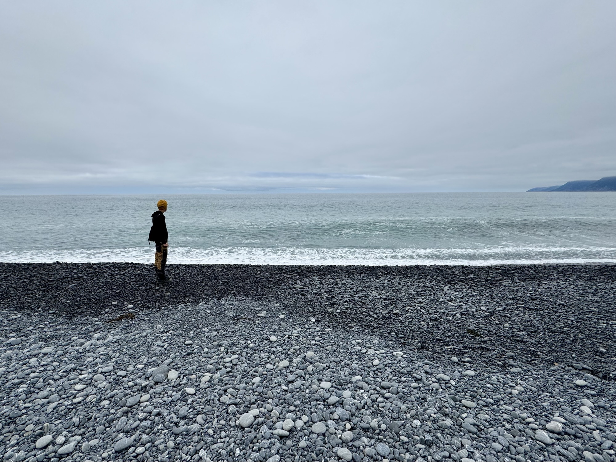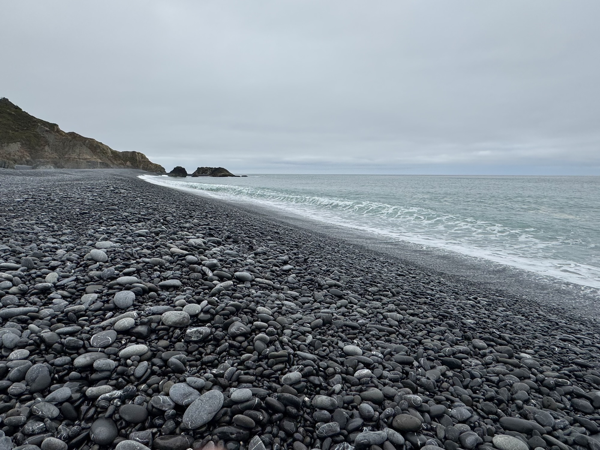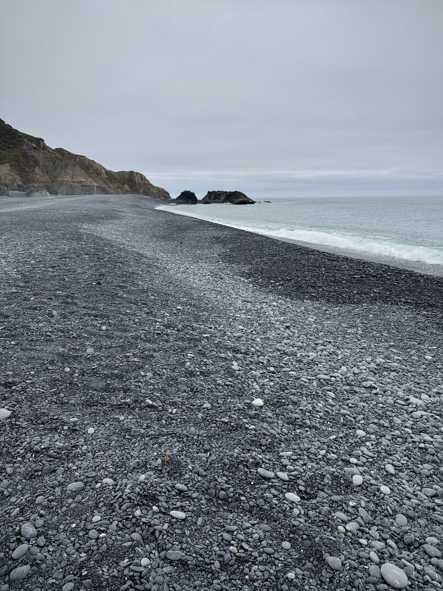 The magic of the Pacific Coast annoys me sometimes. How is it like this? I was so happy to finally make it down the hill to that beach. It was pretty fun to figure out that the ‘black sand’ here is really just bajijllions of perfectly round black rocks.