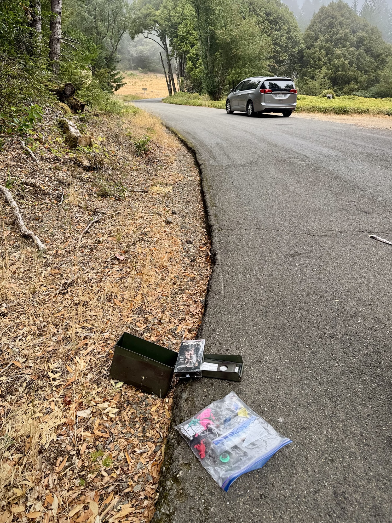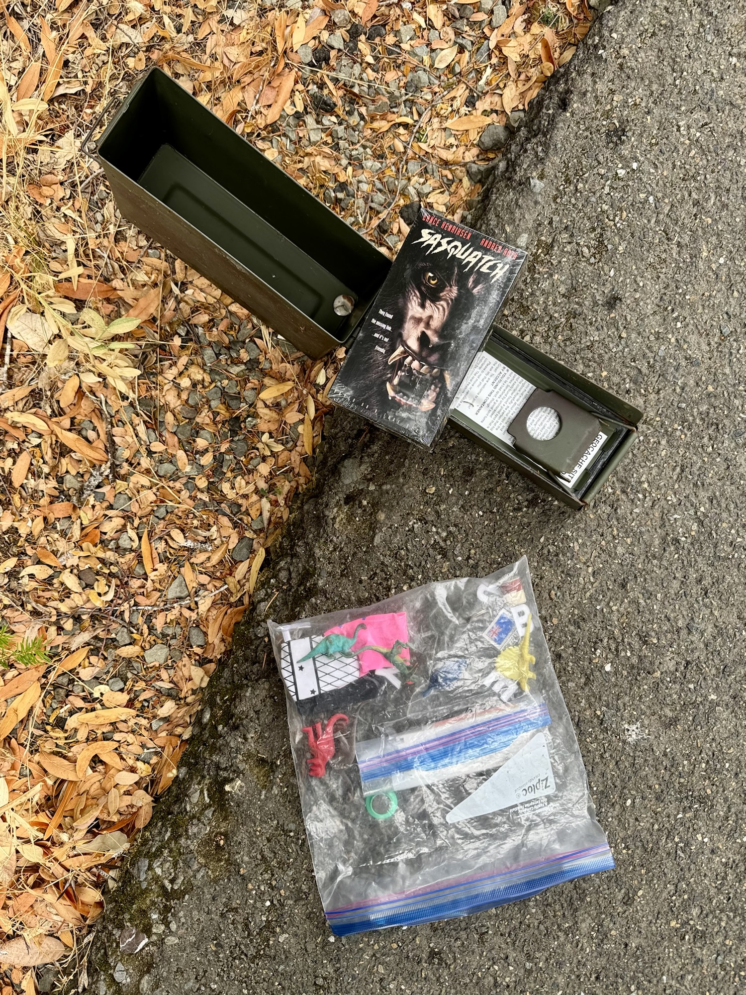 Around 10AM, we arrived in Shelter Cove. It was aesthetically grey and foggy, and it was a pain in the butt to find this geocache but we had such a good chuckle when we did. I love that someone dropped off this unopened Sasquatch DVD. Also I was obsessed with these Shaq gummies for this entire trip.