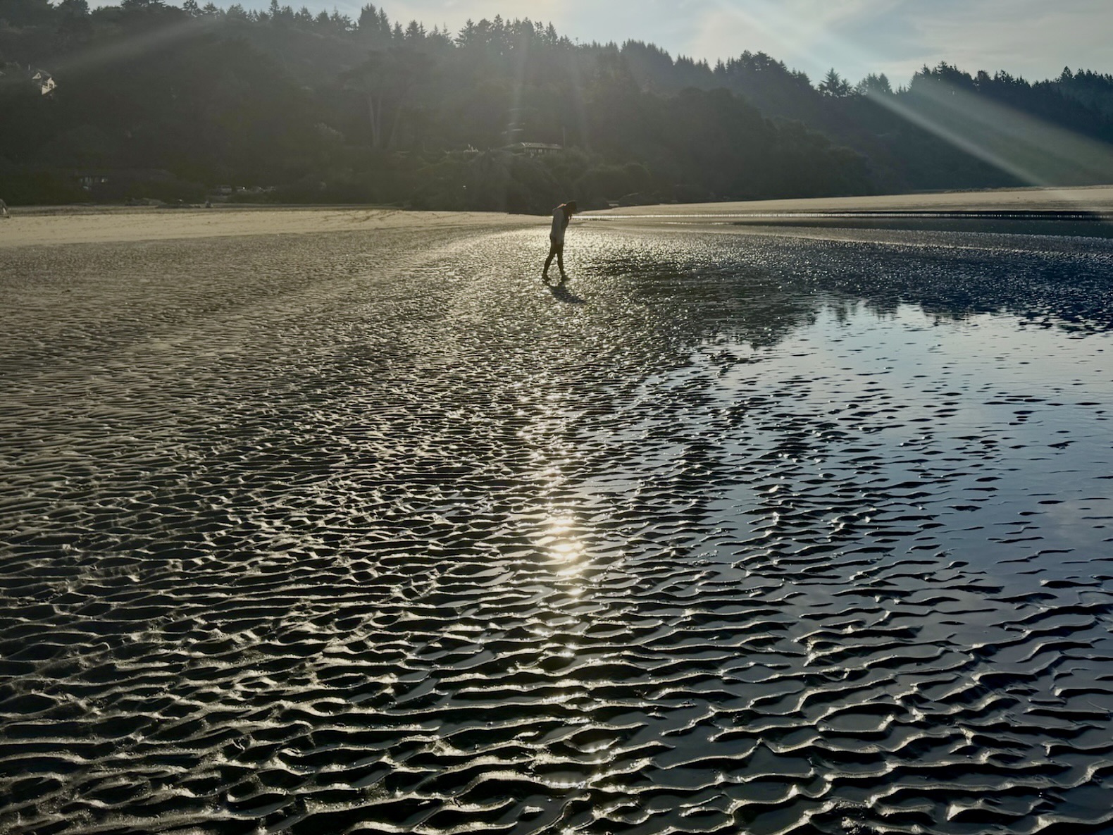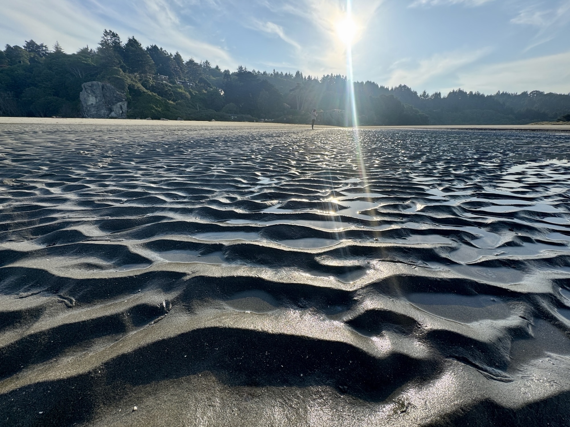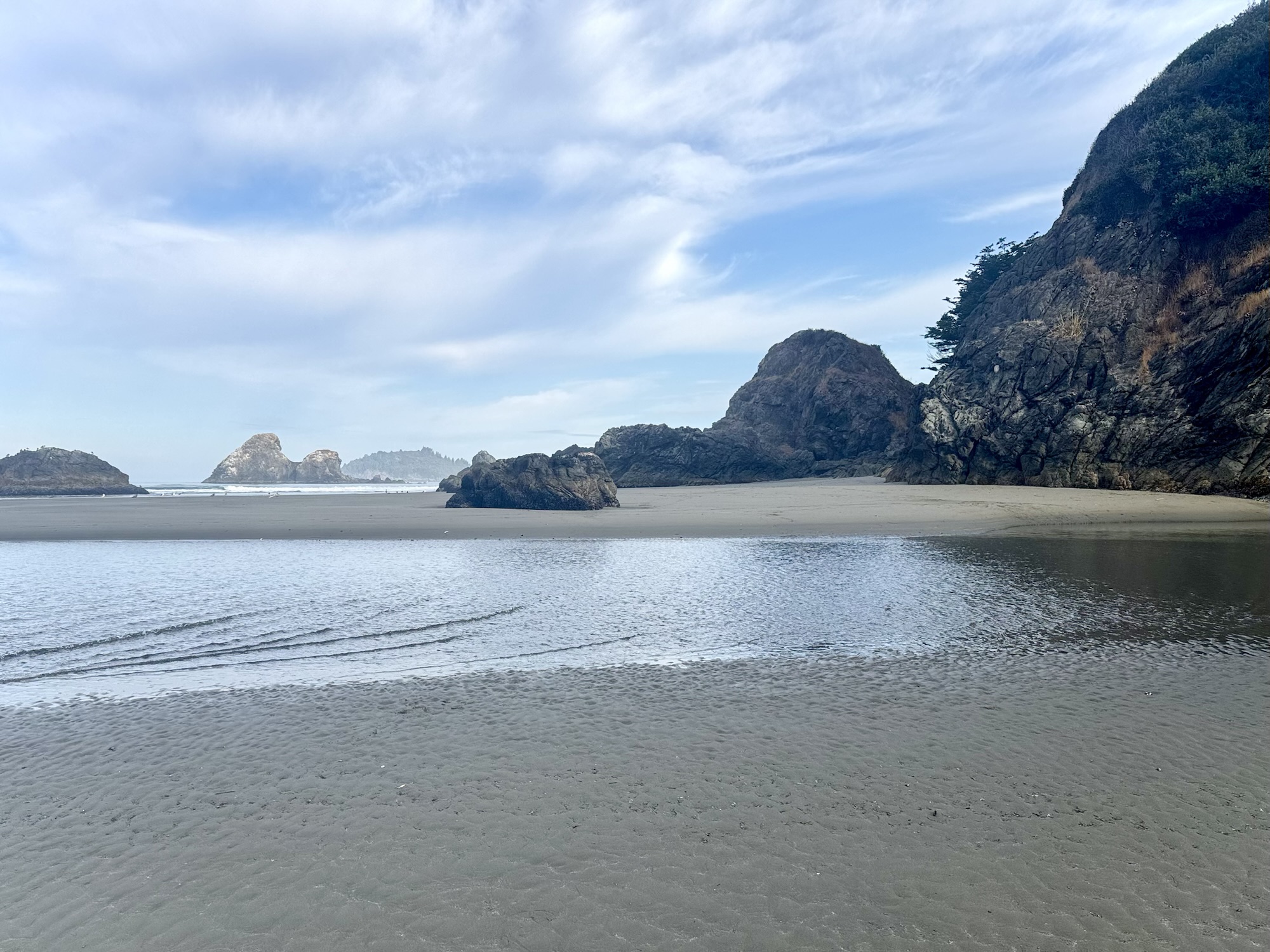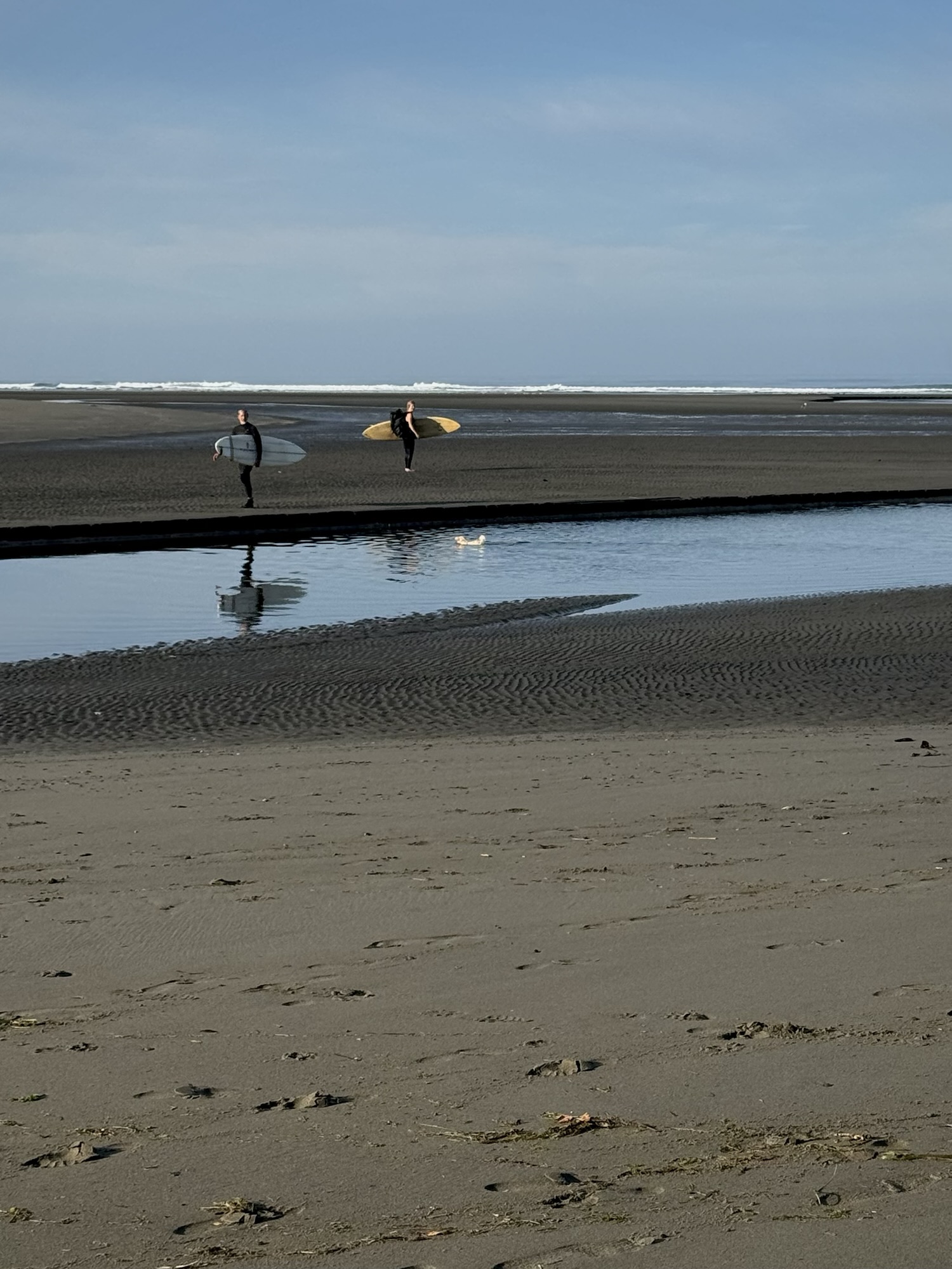 The beach leading to the tideline is a surprisingly loooong walk, and it’s partially cut in half by a stream made by a river ending onto the beach and feeding back into the ocean.