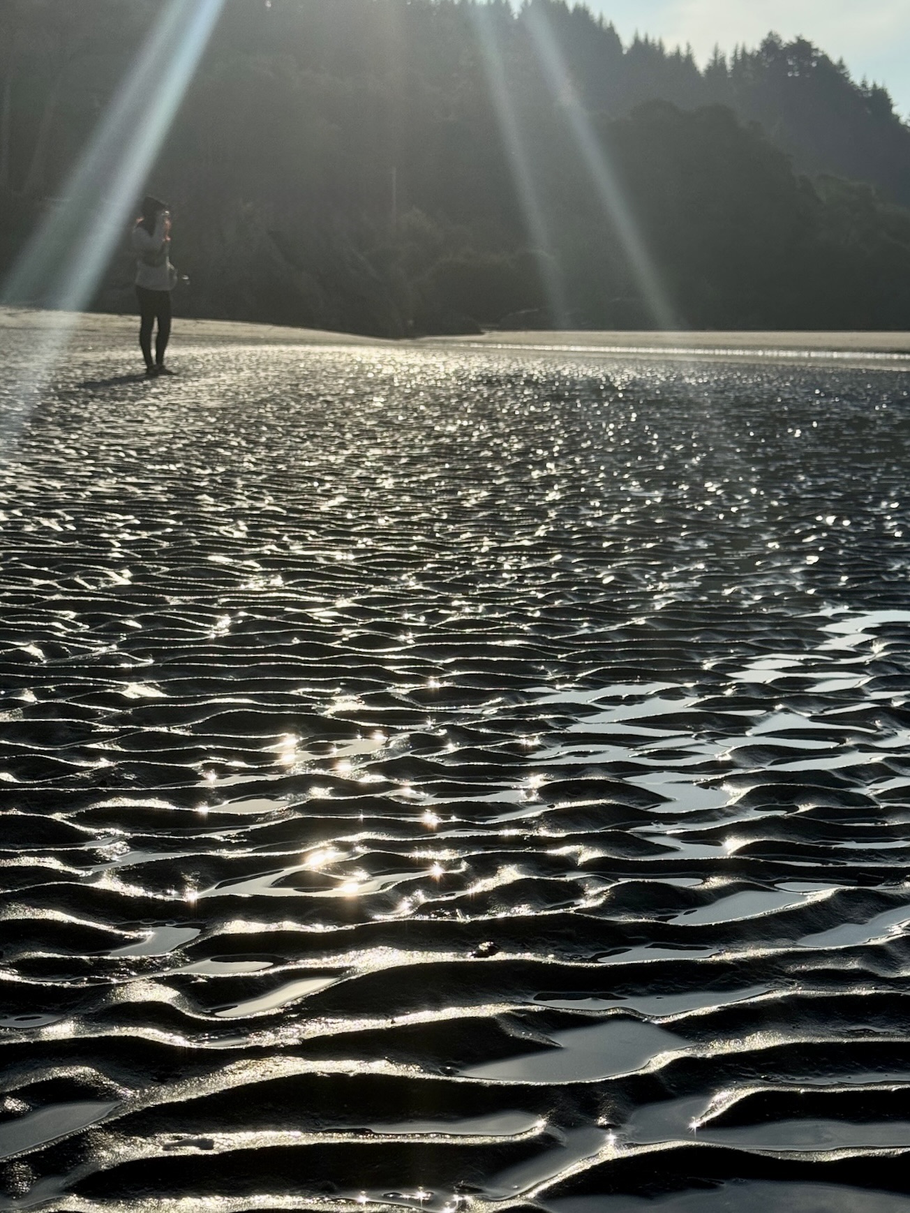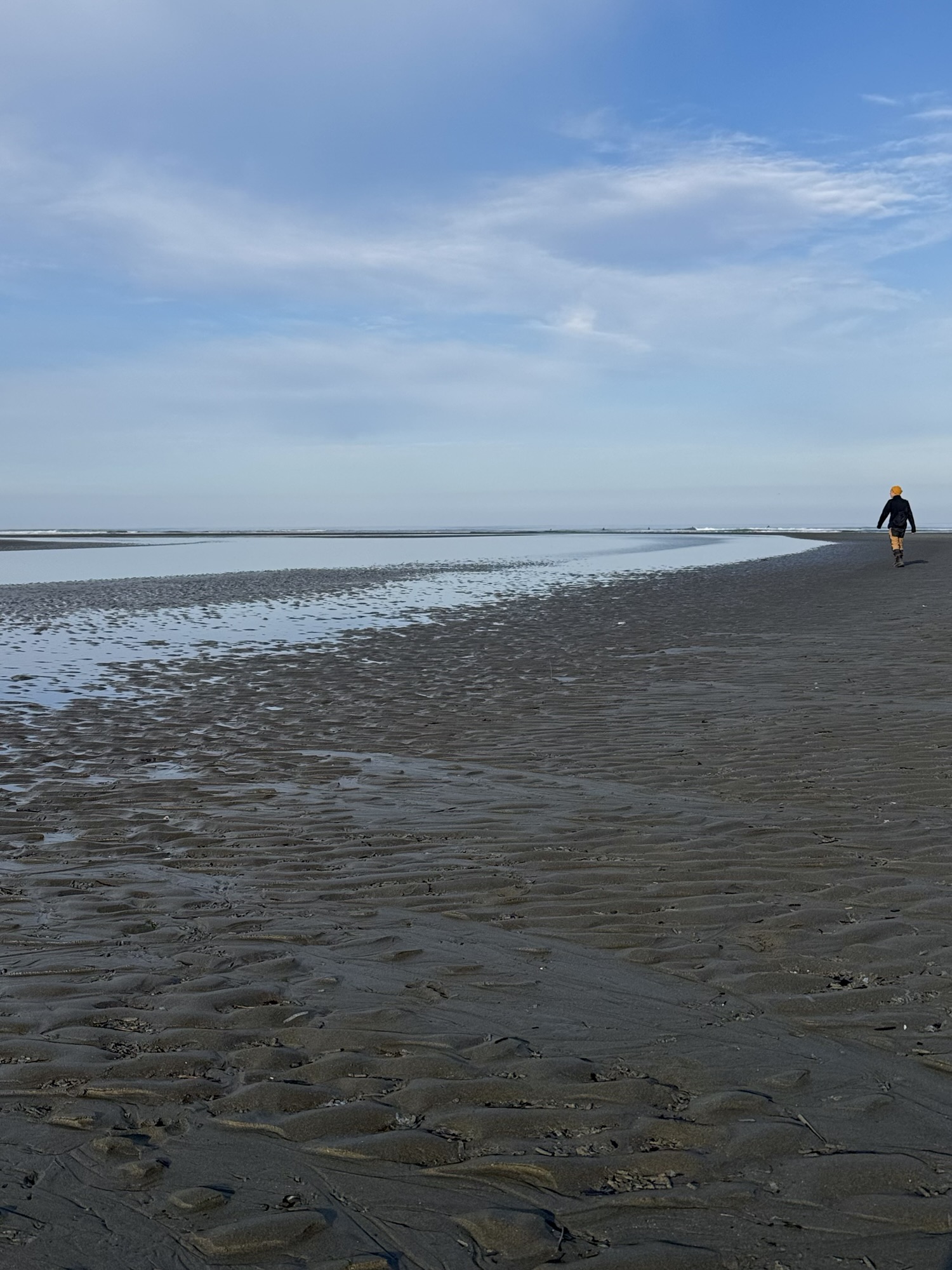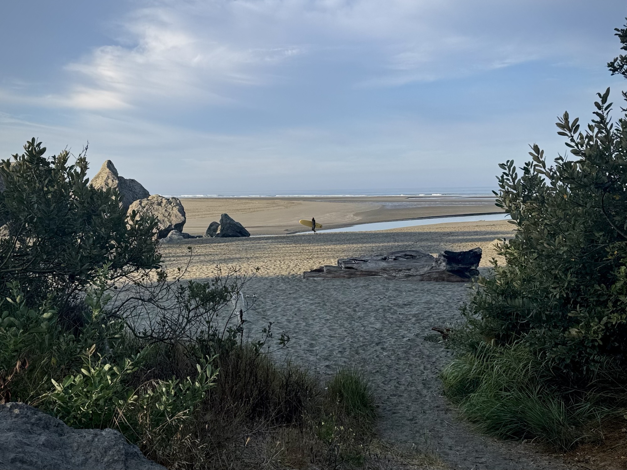 The beach leading to the tideline is a surprisingly loooong walk, and it’s partially cut in half by a stream made by a river ending onto the beach and feeding back into the ocean.