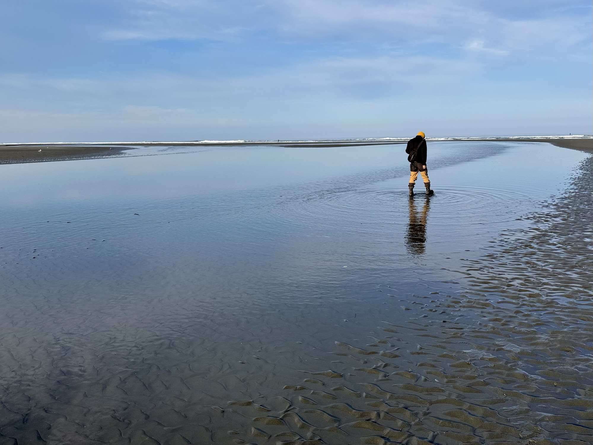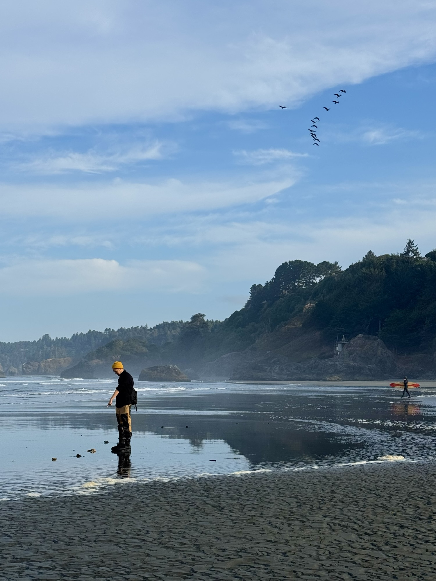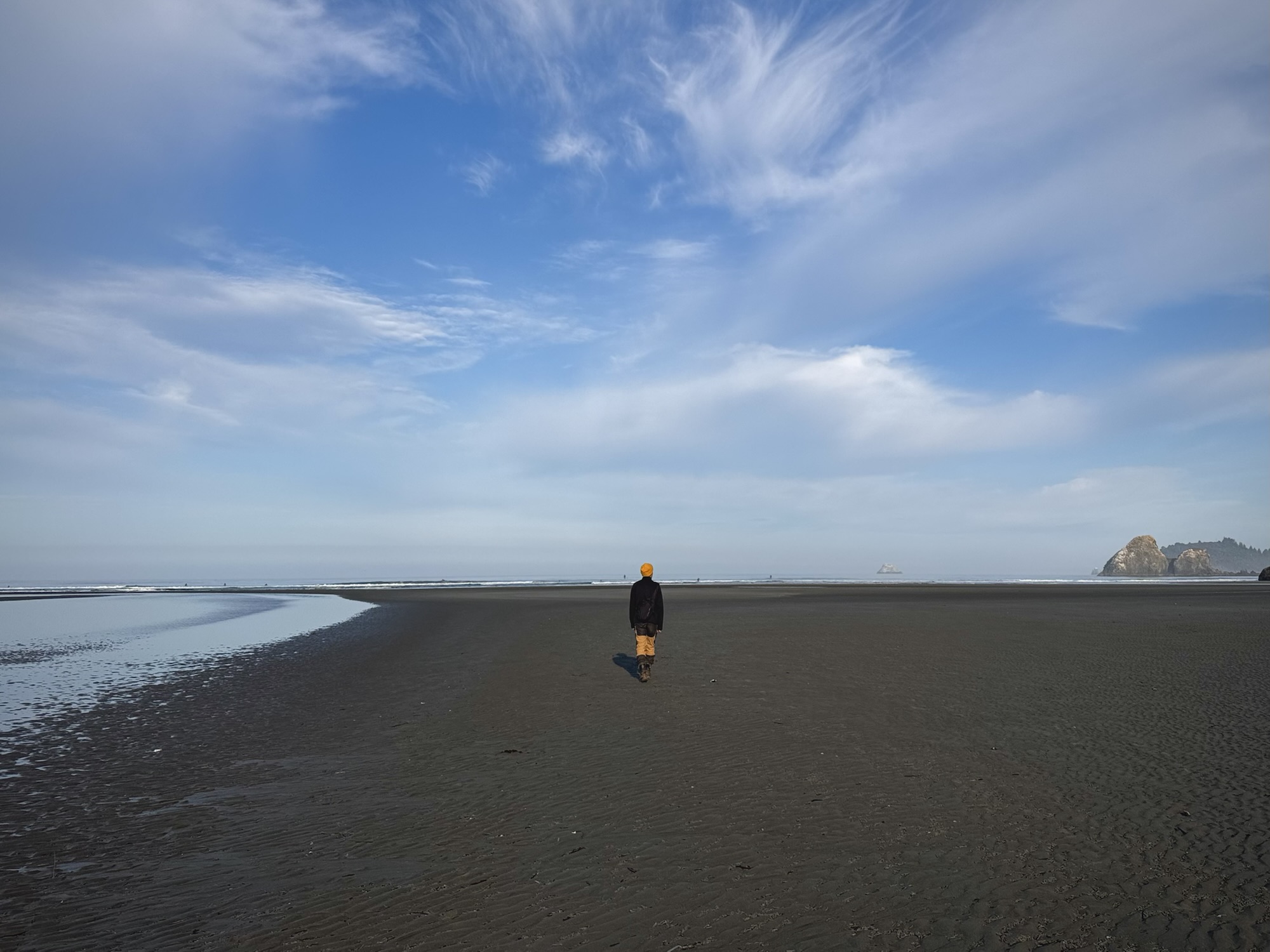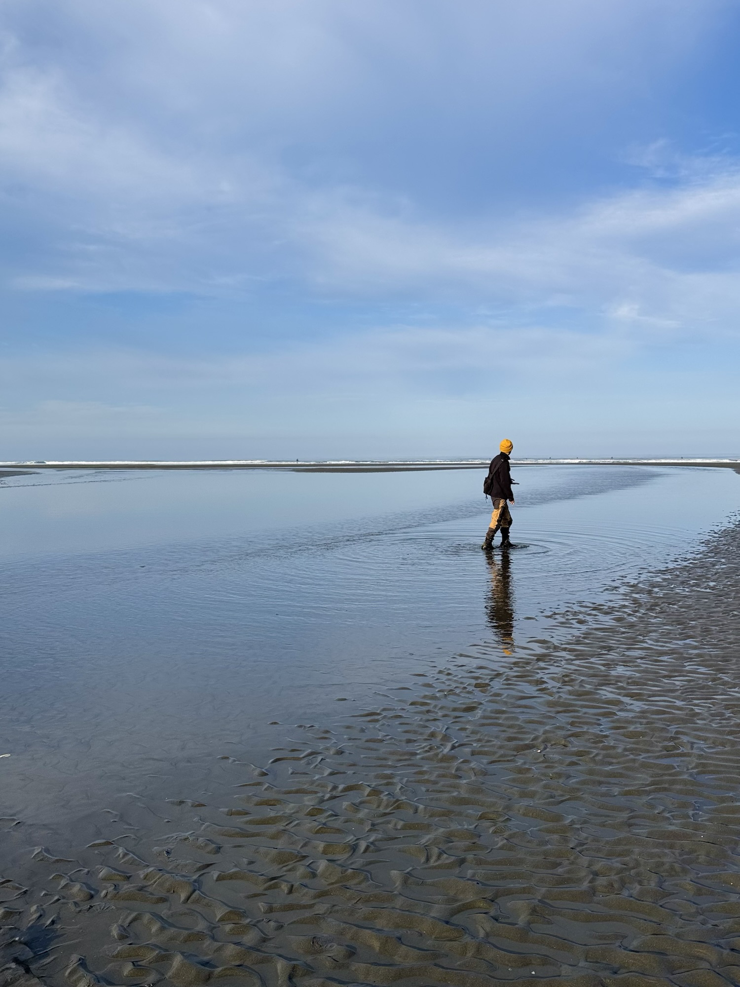 The beach leading to the tideline is a surprisingly loooong walk, and it’s partially cut in half by a stream made by a river ending onto the beach and feeding back into the ocean.