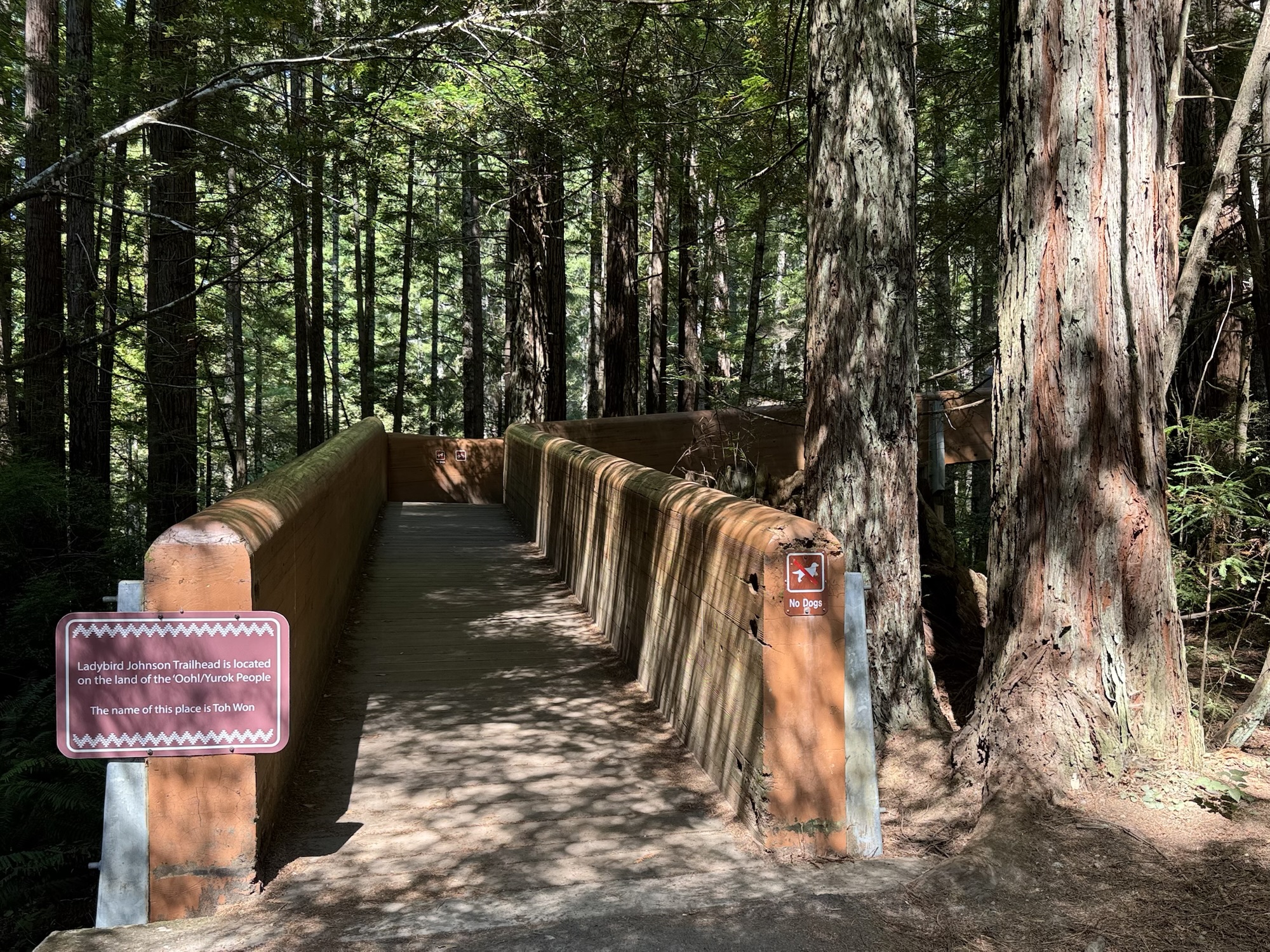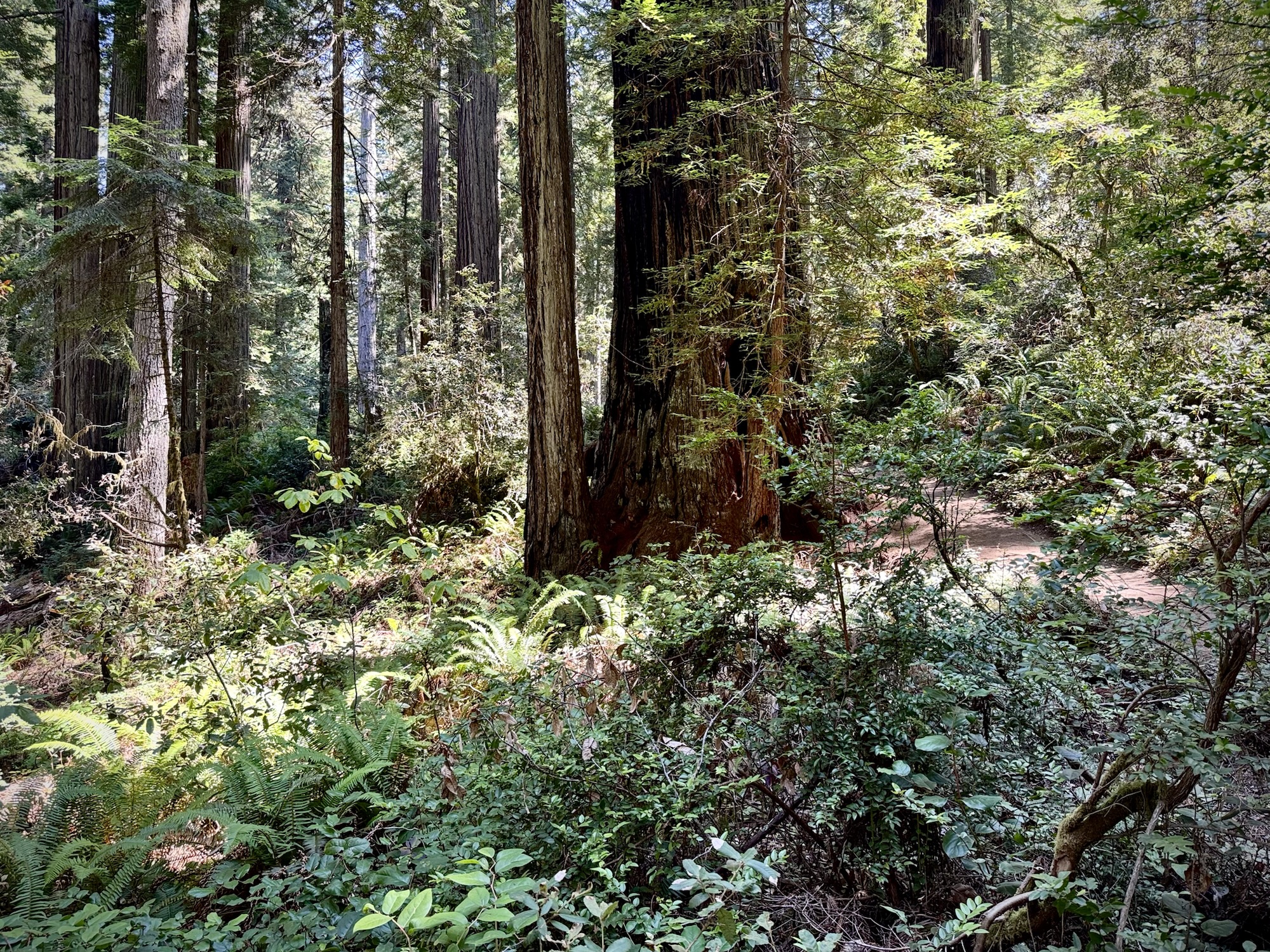 The trail through the Lady Bird Johnson Grove is a 1.5-ish mile loop on mostly flat redwood mulch. This was our first real stop in the Redwoods, so we were still super psyched by every new tree around each corner.