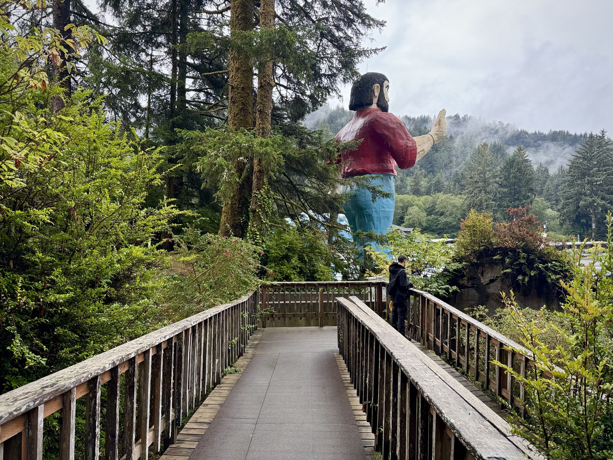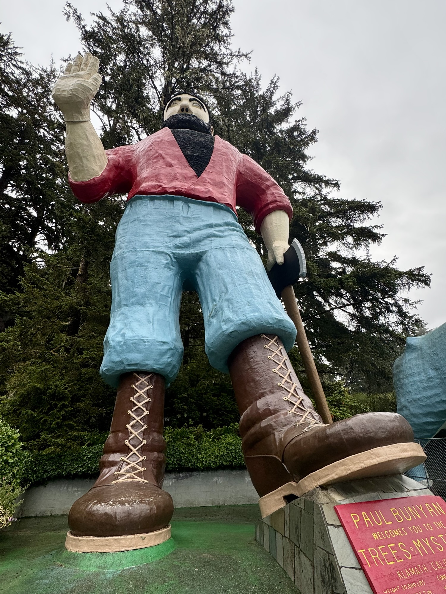 We spent the night at Motel Trees literally right across the street, so it was a breeze to arrive at Trees of Mystery right when they opened at 9AM. It’s in Klamath, California – basically immediately north of the Prairie Creek Redwoods. General admission is $30 per adult.