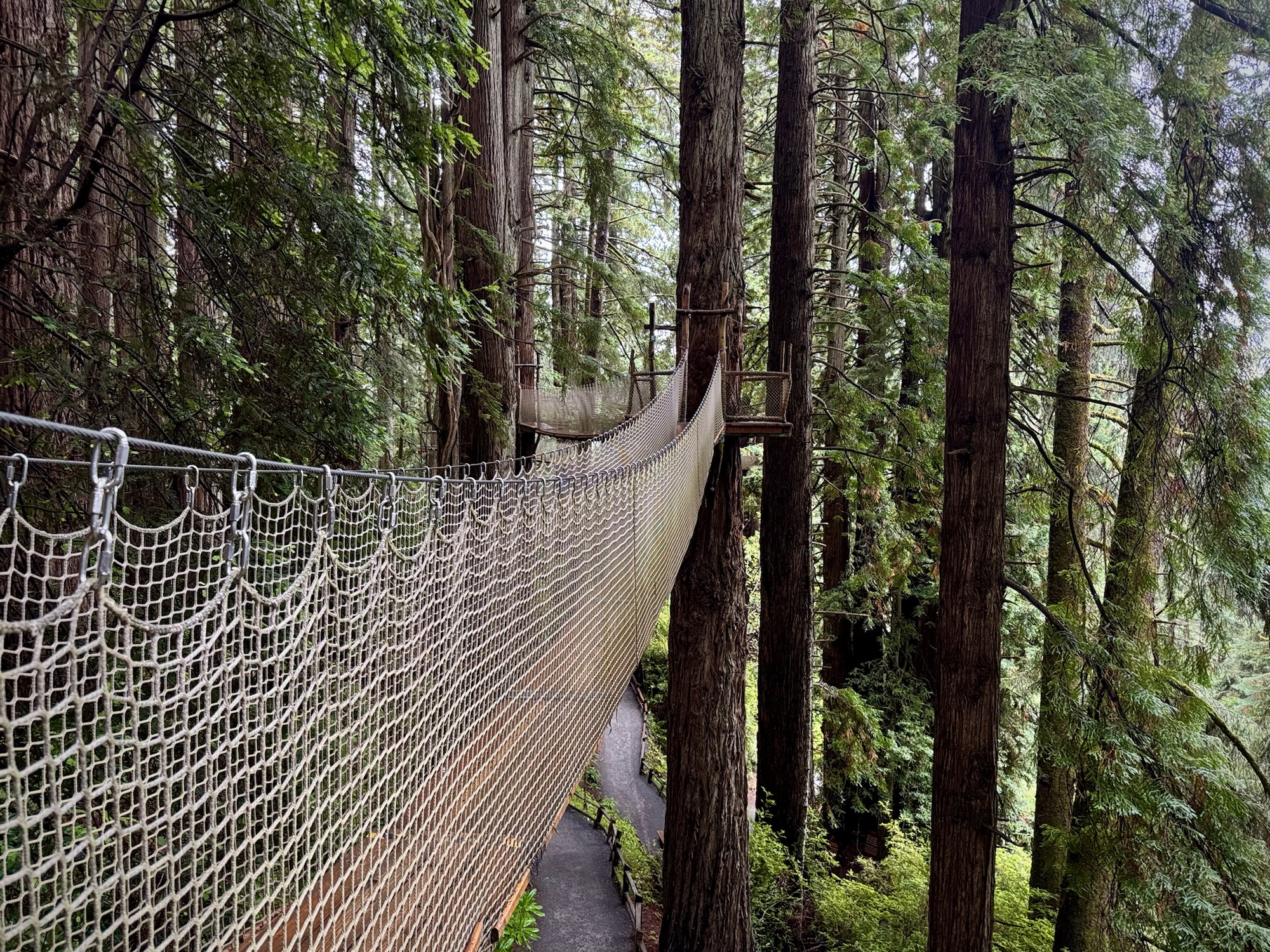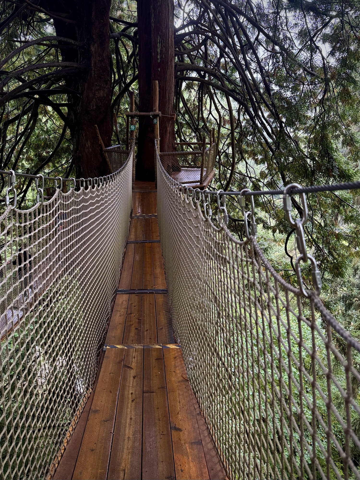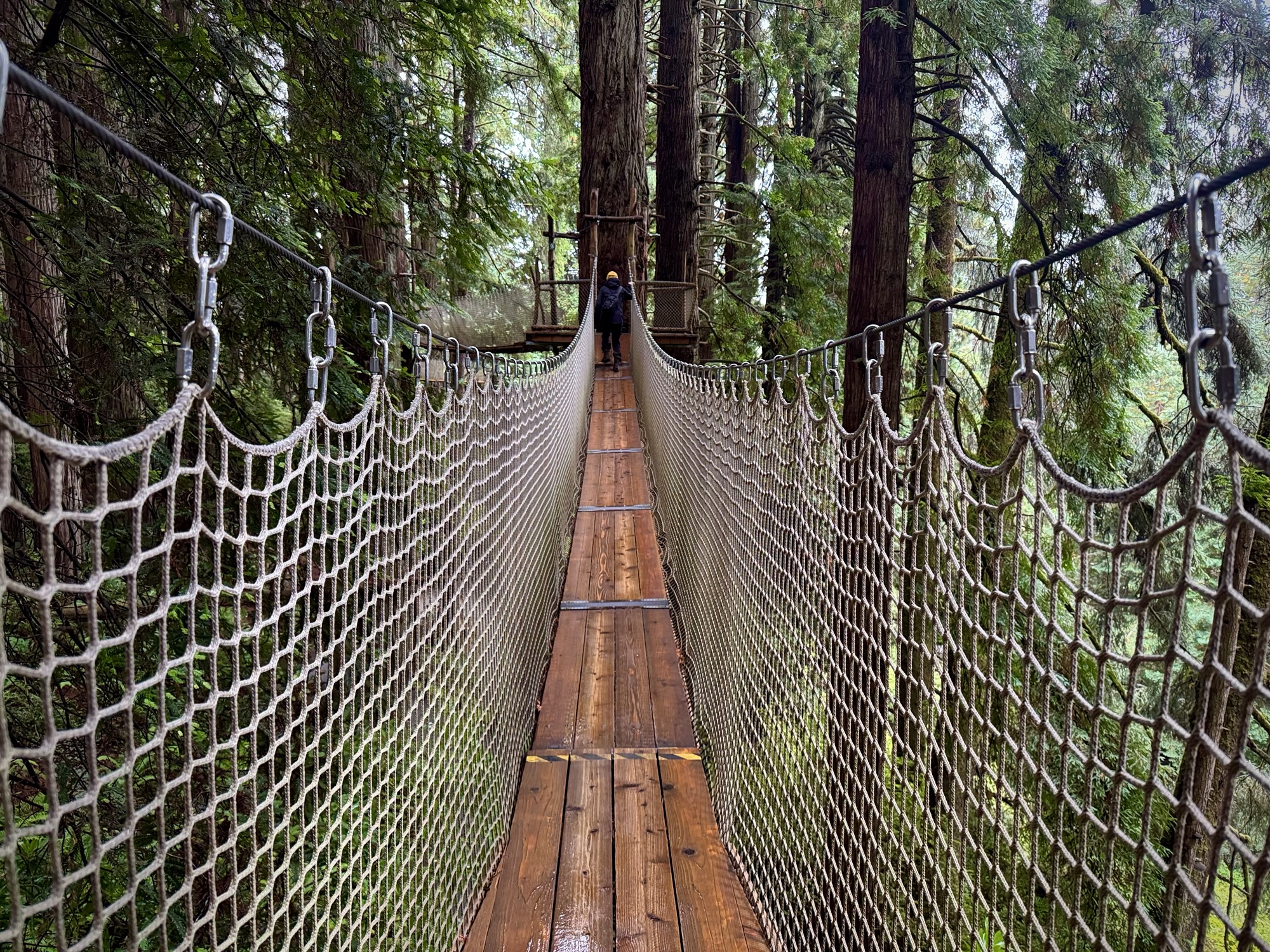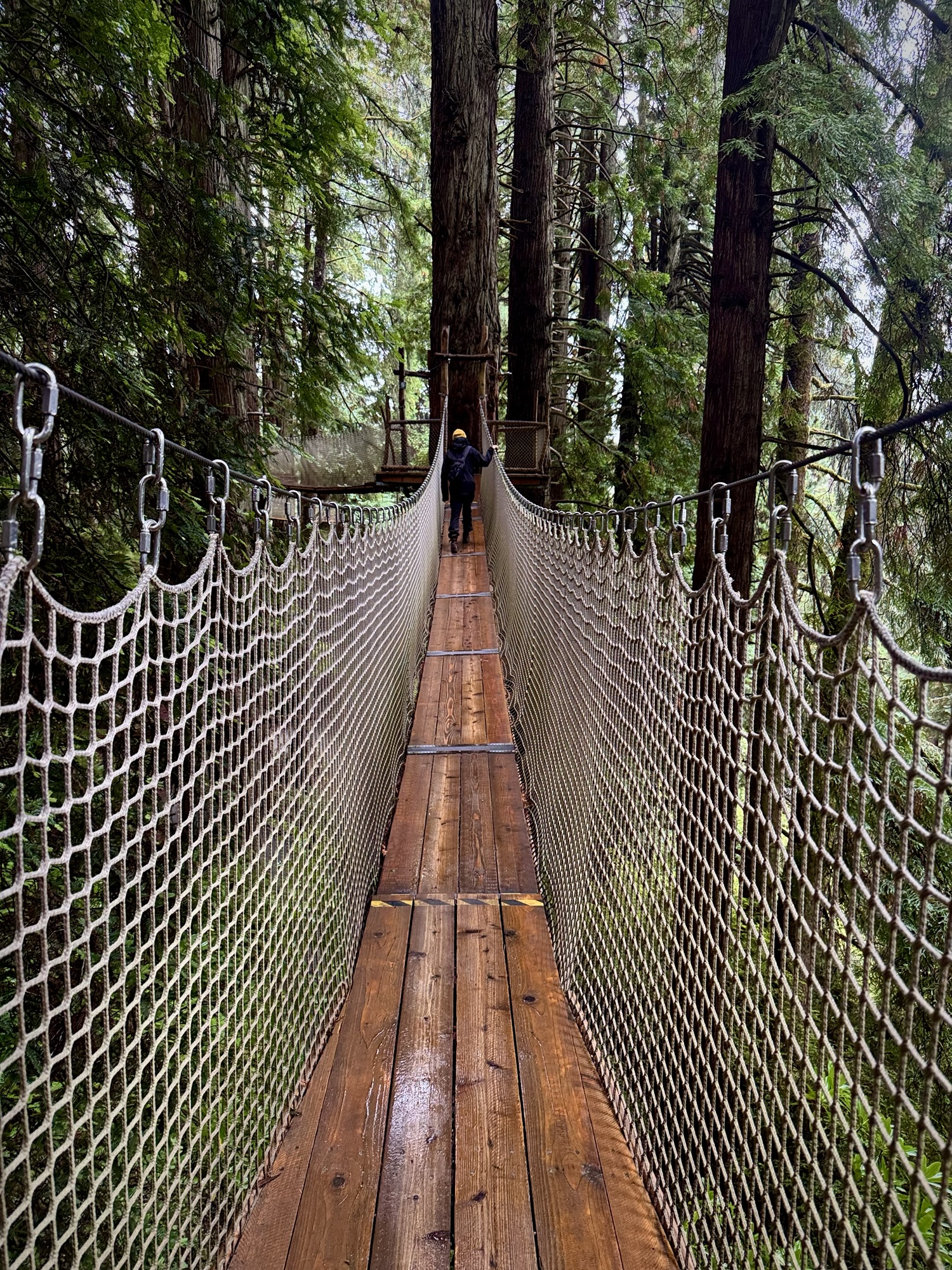 The bridges do bounce a little bit when you walk across – nothing crazy – so we took our time walking across carefully, especially since the wood was wet and kinda slippery.