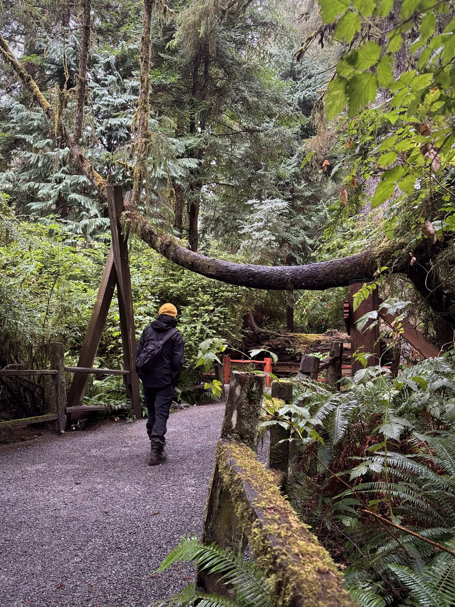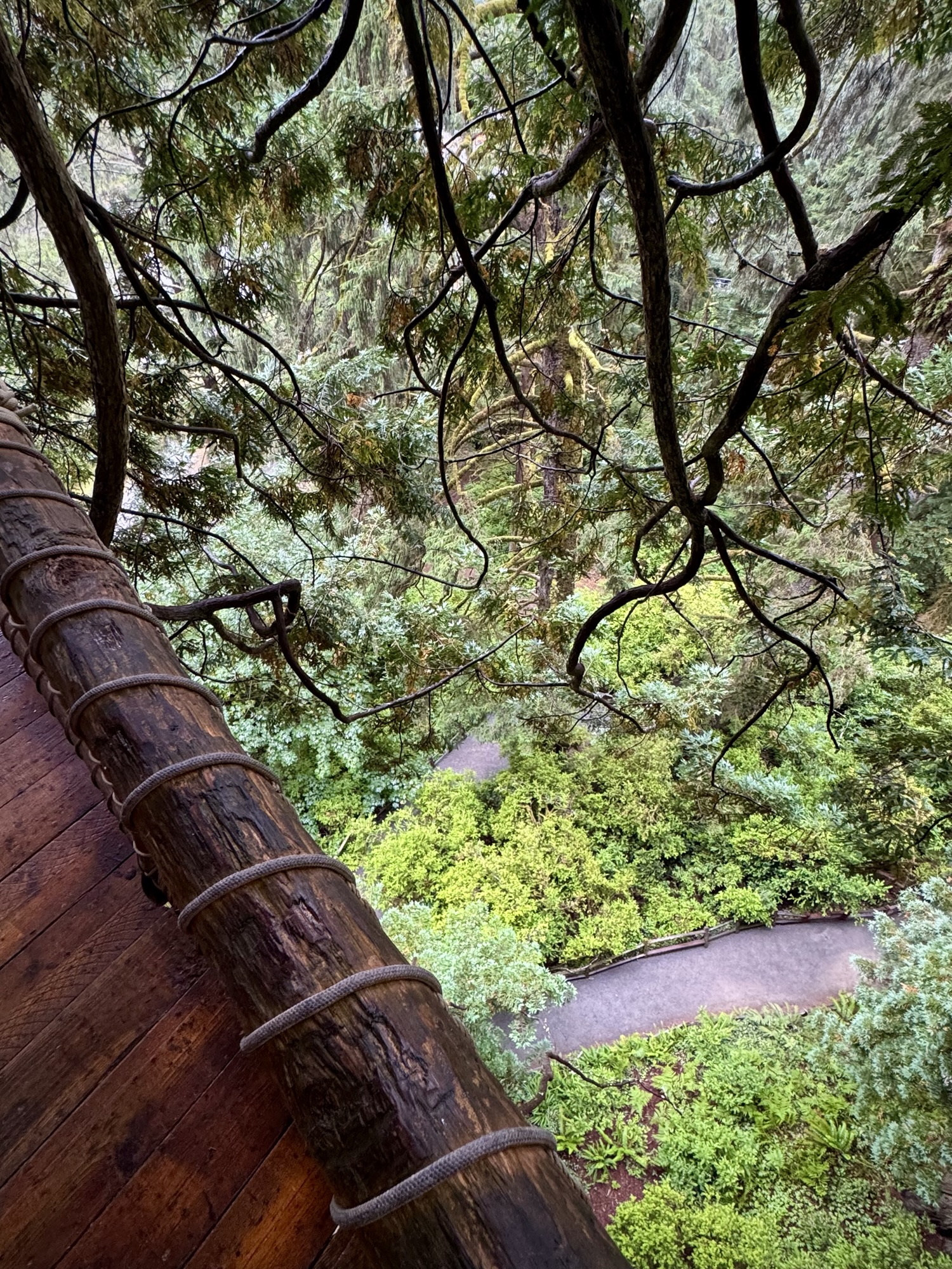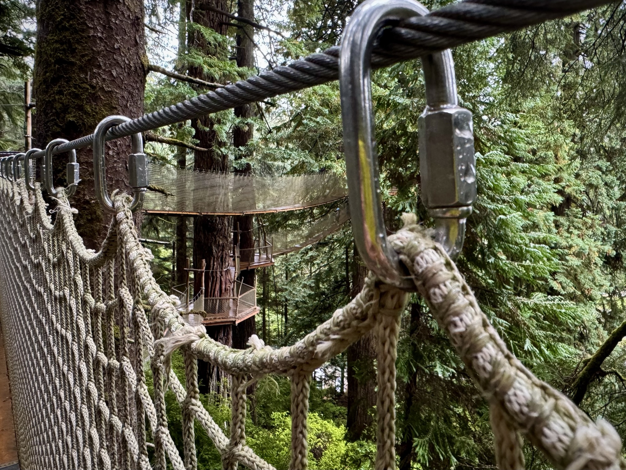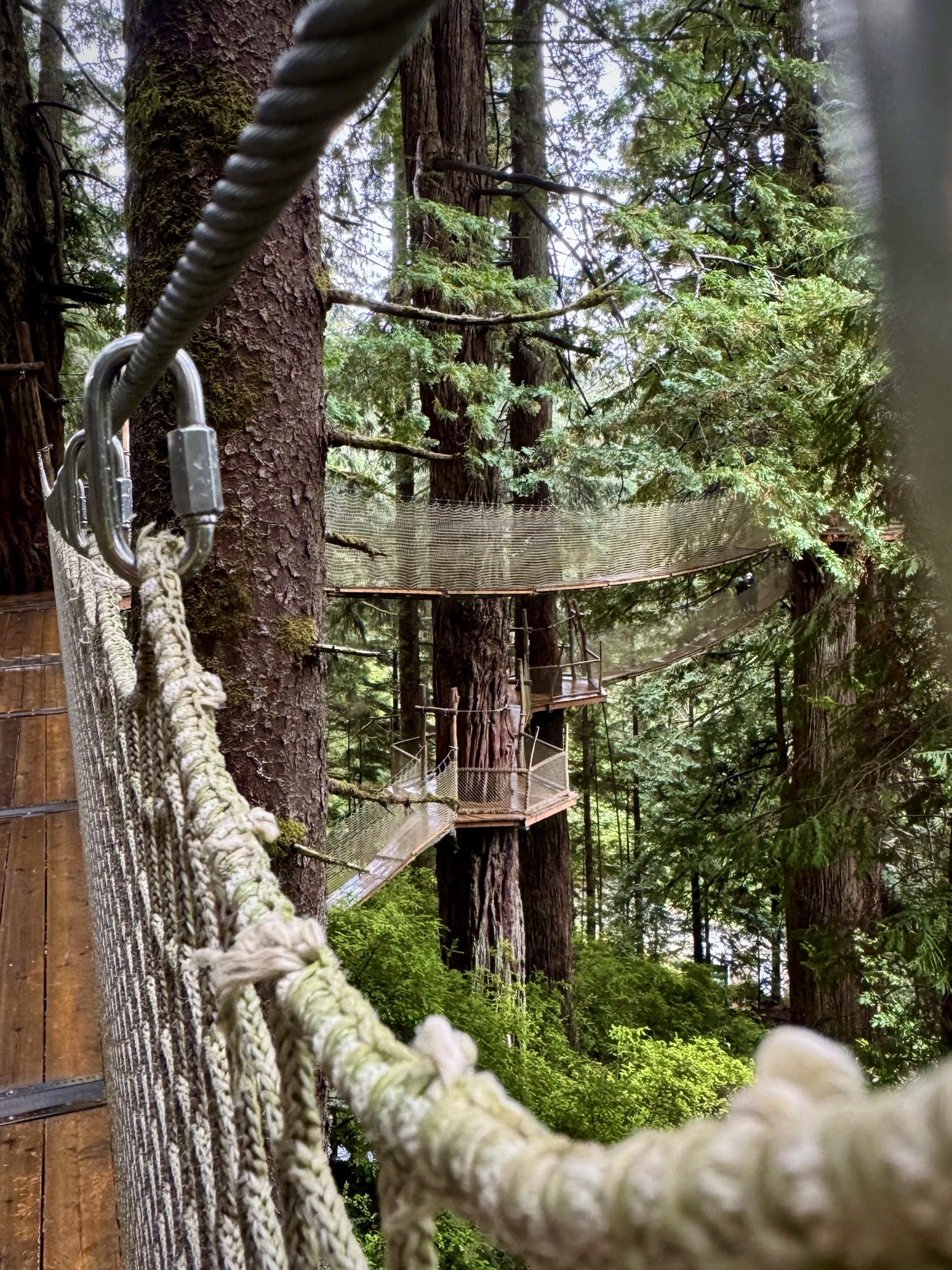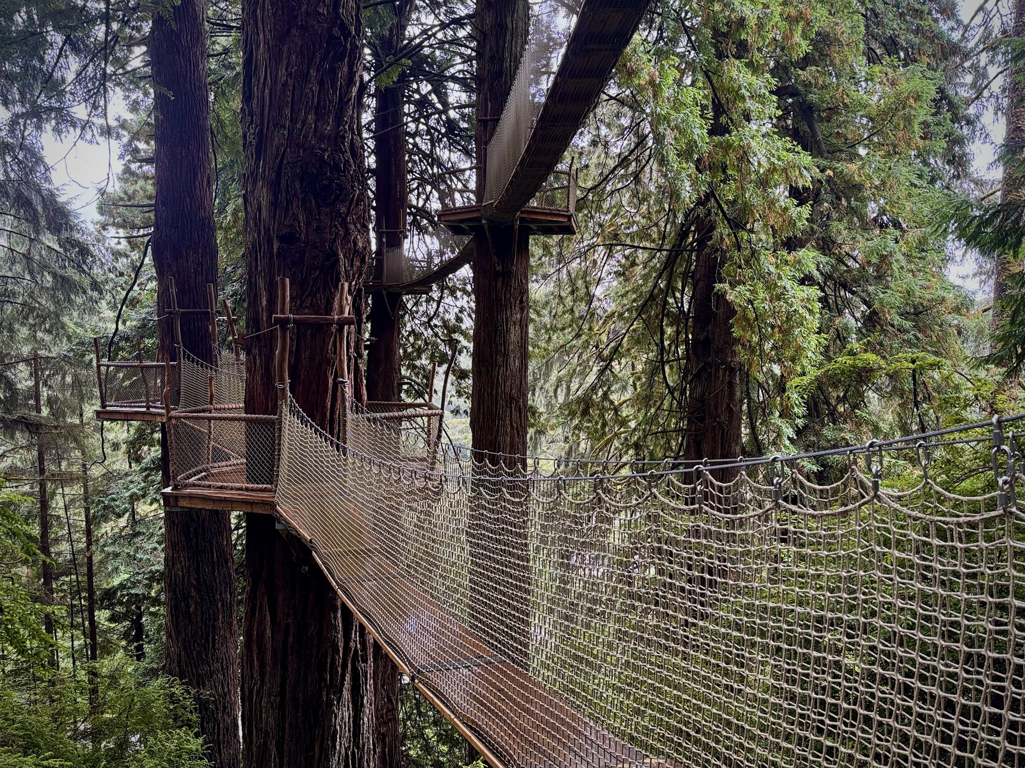 The bridges do bounce a little bit when you walk across – nothing crazy – so we took our time walking across carefully, especially since the wood was wet and kinda slippery.
