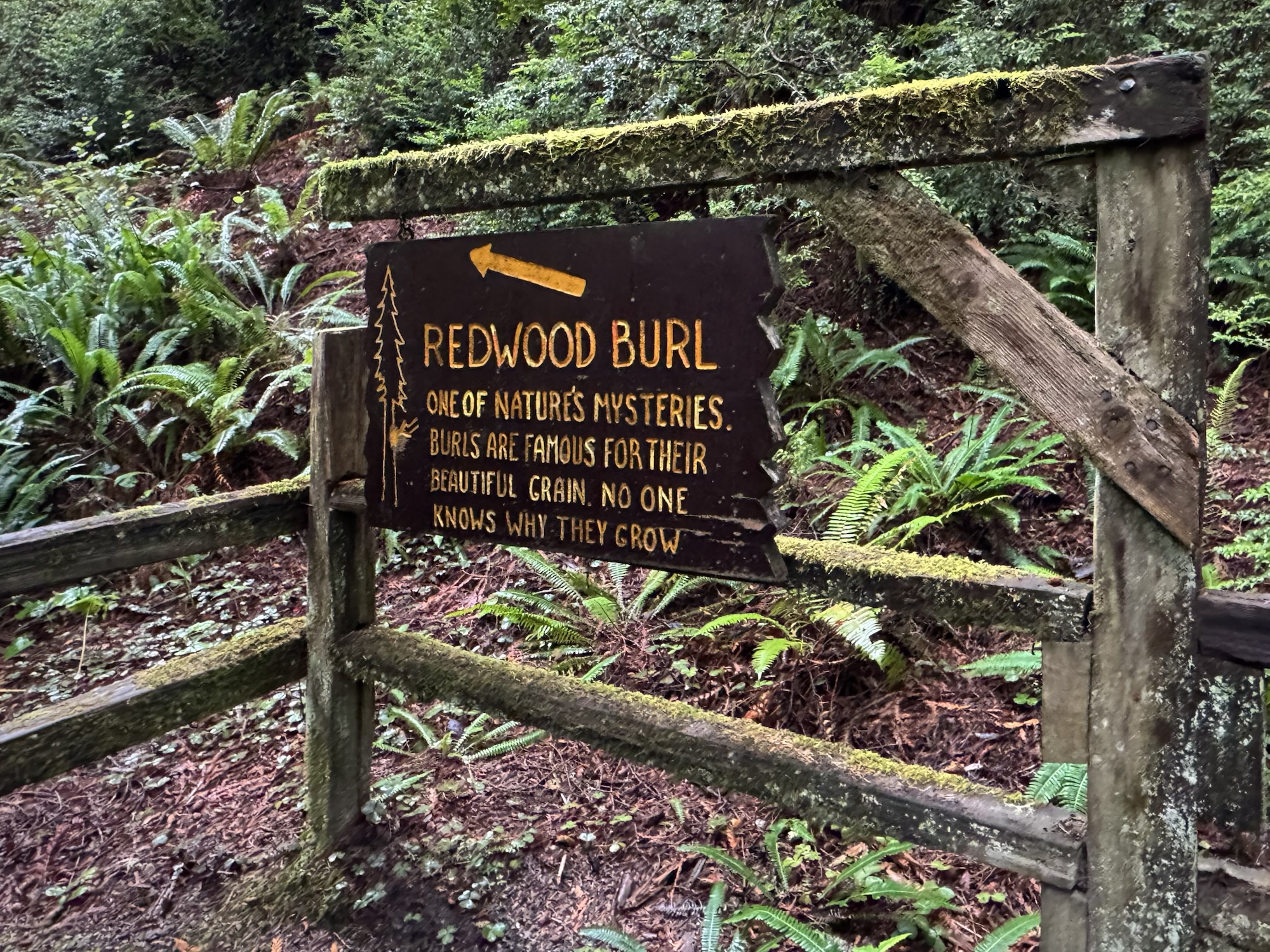 “Redwood Burl… One of nature’s mysteries, burls are famous for their beautiful grain. No one knows why they grow.”