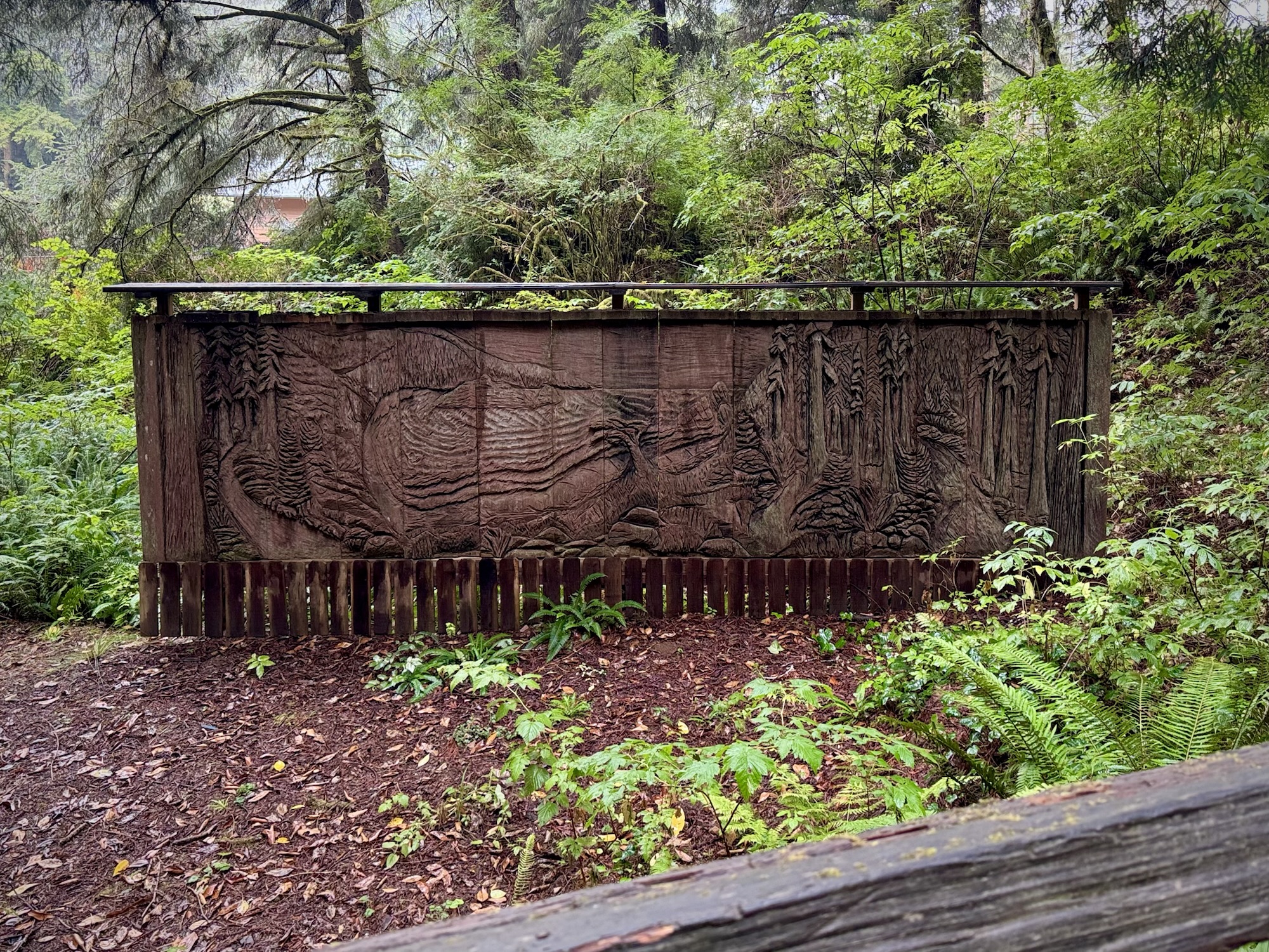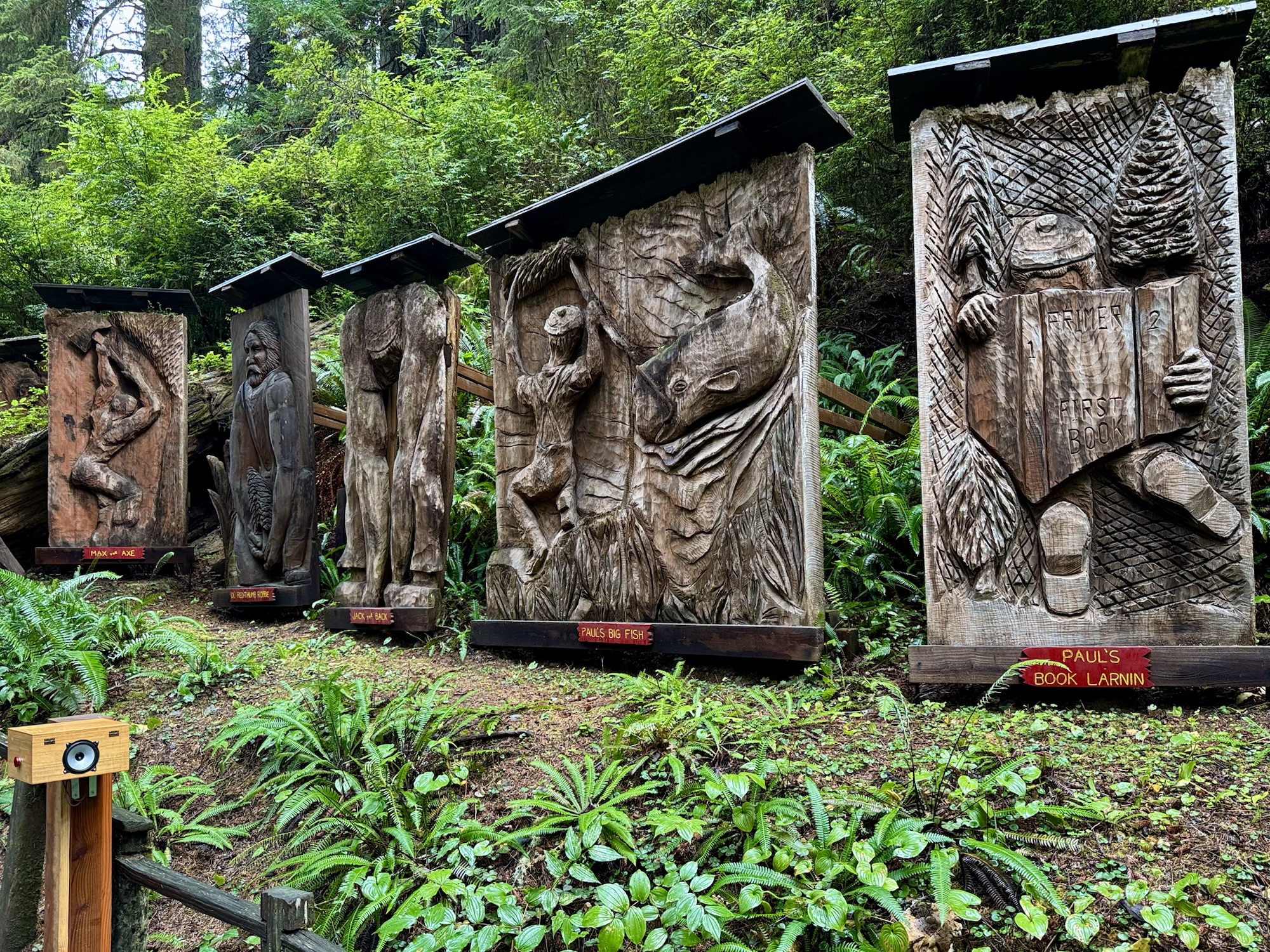 The path leads to the silly Trail of Tall Tales that talks mostly about Paul Bunyan’s life via panels of redwood that are carved by chainsaw. Like, yeah, it’s super kitschy – but imagine how much freakin time went in to carving all of these, seriously.